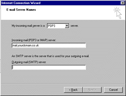 5. Make sure the My incoming mail server is a box has POP3 selected. In the Incoming mail box type the POP3 setting this will be mail.yourdomainname.co.uk In the Outgoing mail box type the SMTP settings this will either be the smtp server you use with your current service provider or mail.yourdomainname.co.uk.