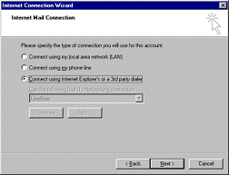 7. Click on the Connect using Internet Explorer or a 3rd party dialer radio Button Click the Next button.